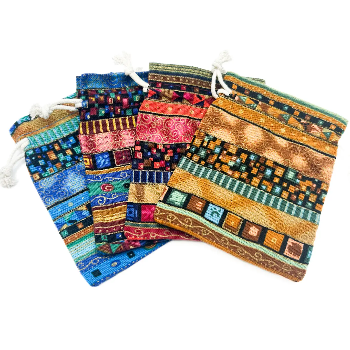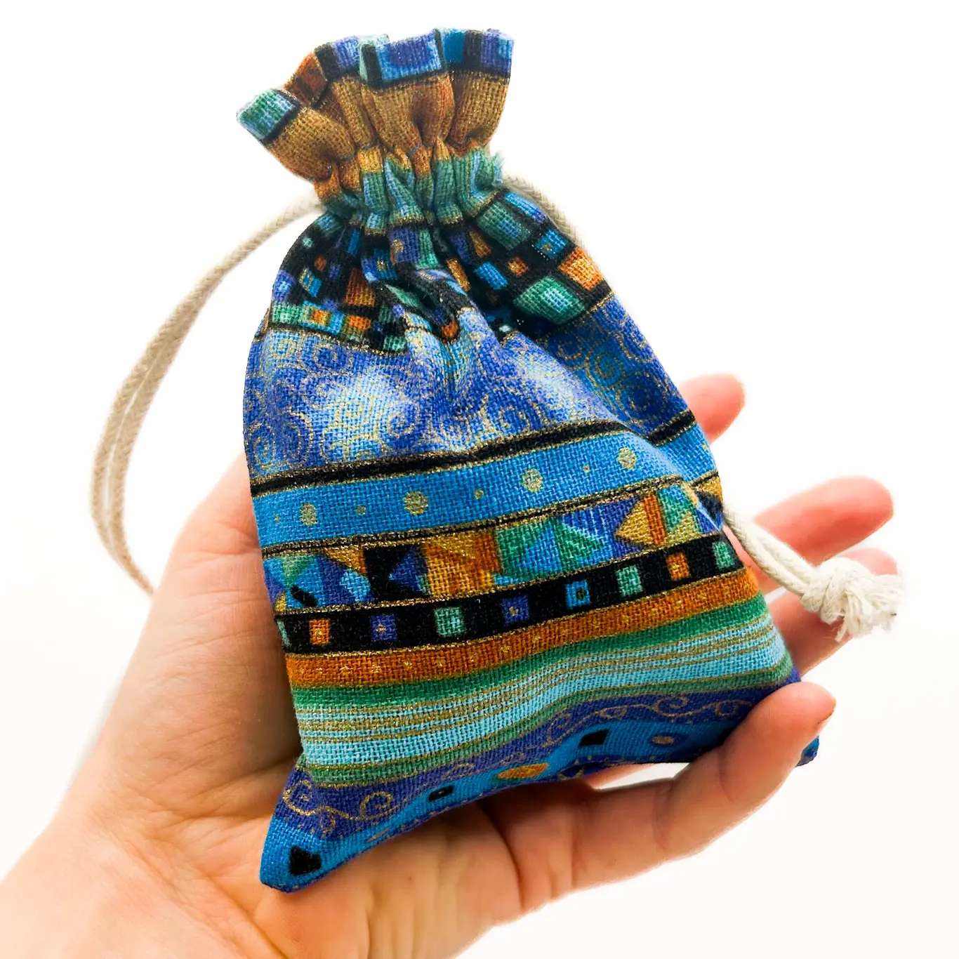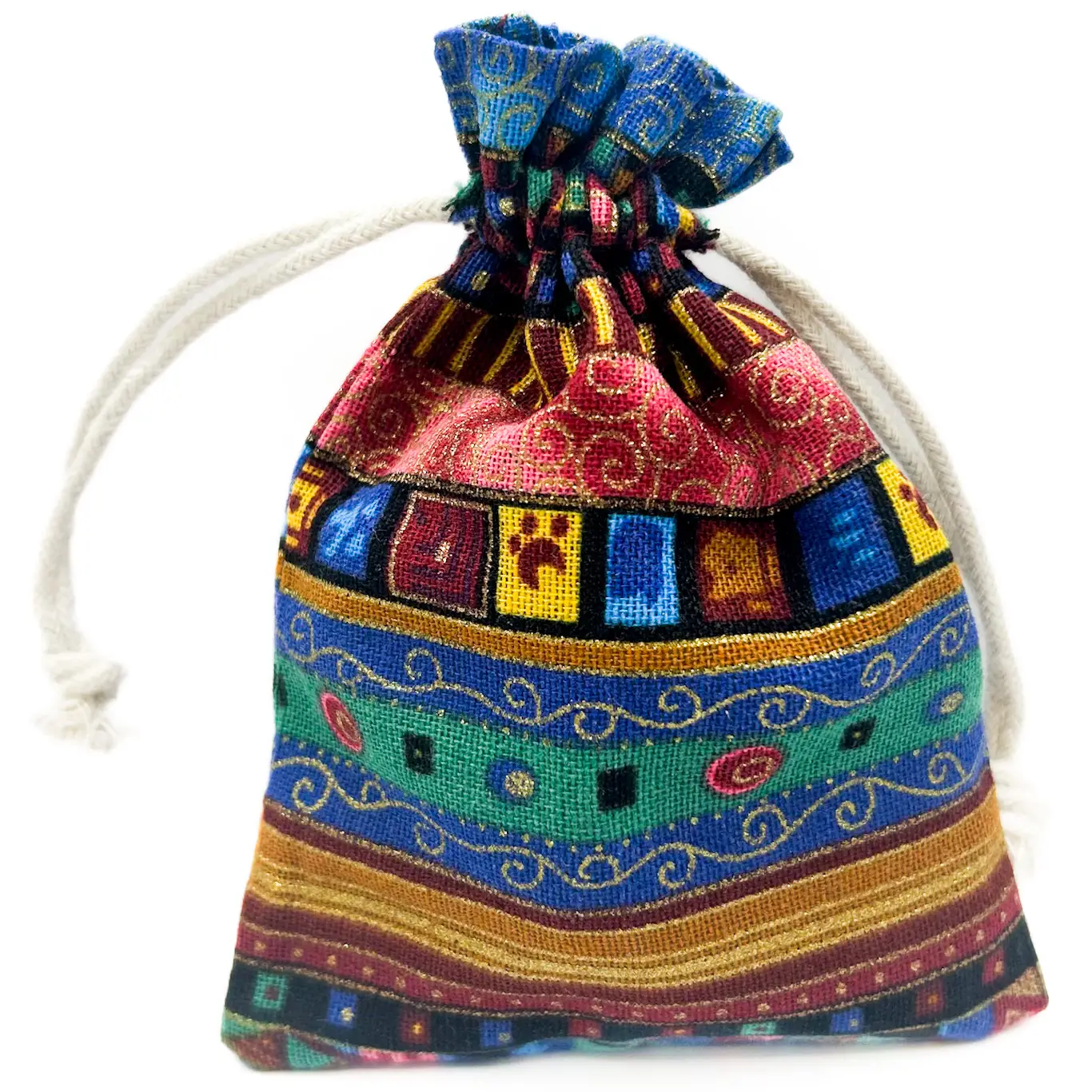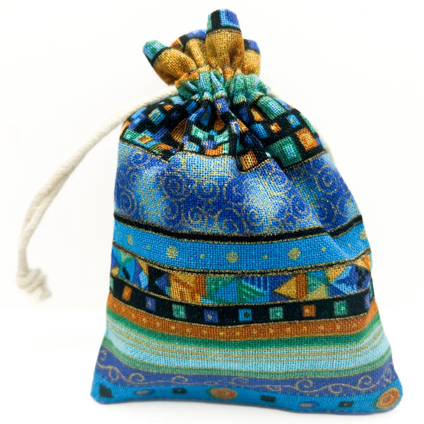 These fun colorful drawstring cotton bags are perfect as gift wrap, goodies bags, for trinkets, etc. They measure about 7″ x 5″ flat, with a height of 6″ from the bottom to drawstring. They come in 4 fun color patterns. The gold color on patterns has a metallic look.