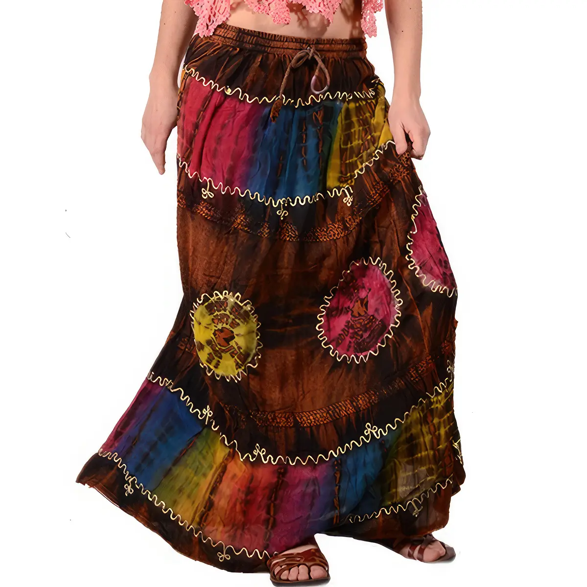 Not Fade Away Tye Dye Embroidered Trim Tiered Skirt